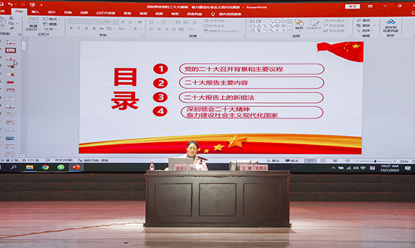 在湖光校区实验剧场举行学习宣传贯彻党的二十大精神宣讲会。学校党委理论宣讲团成员、马克思主义威尼斯人娱乐城