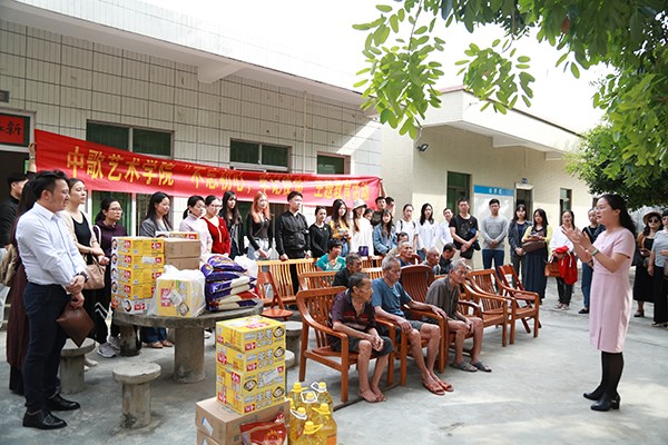 送给老人们慰问品,并致以诚挚的问候和祝福,还提议师生们给老人们表演节目。赵密密、高鲲老师以及学生们主动上场演唱和跳起舞蹈,精彩而又满怀深情的表演,让平日里孤独寂寞的孤寡老人感受到了浓浓的真情,露出幸福的笑容,整个敬老院沉浸在温馨的气氛中。