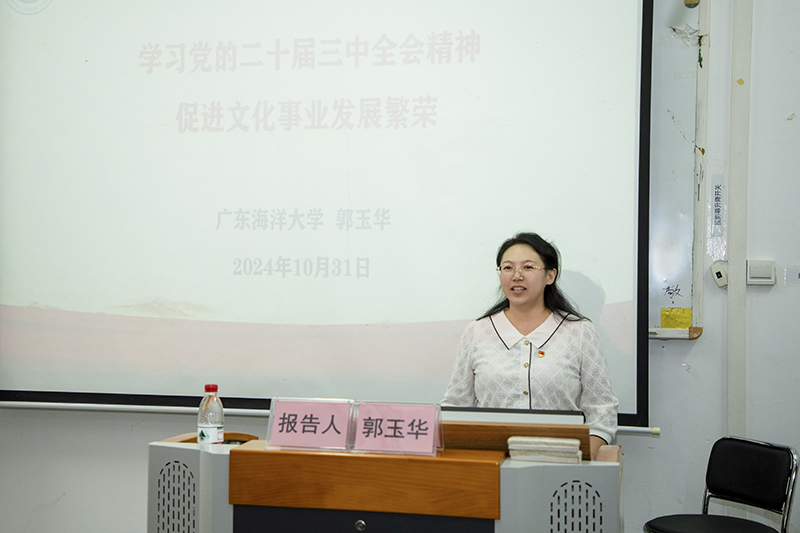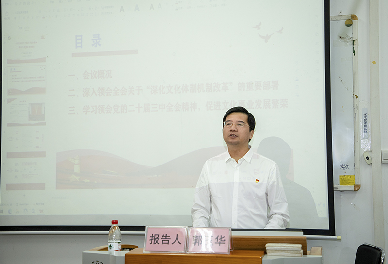 之后,郭玉华博士以“学习党的二十届三中全会精神,促进文化事业发展繁荣”为主题为大家做宣讲报告。她围绕党的二十届三中全会概况、深入领会全会关于“深化文化体制机制改革”的重要部署、学习领会党的二十届三中全会精神,促进文化事业发展繁荣三个方面对党的二十届三中全会精神进行了全面讲解,并结合学校新时代高质量发展行动方案和艺术威尼斯人娱乐城