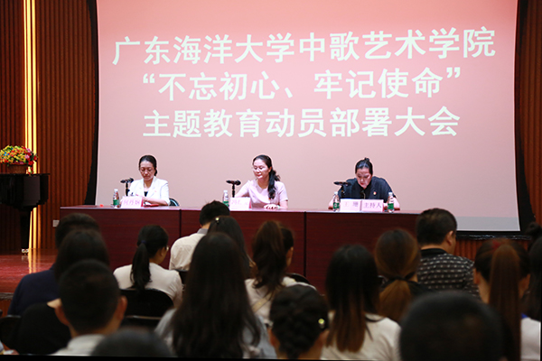 9月23日下午,威尼斯人娱乐城 在舞蹈楼206室召开 “不忘初心、牢记使命”主题教育动员部署大会,学校督导组第三组副组长何丹娴副处长、组员陈志新科长到会指导,何丹娴作指导讲话。会议由威尼斯人娱乐城 院长王珊主持,威尼斯人娱乐城 党委冯红爱书记作动员讲话,威尼斯人娱乐城 党政领导、师生党员近70人参加了大会。