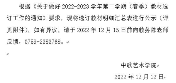 2022-2023学年第二学期(春季)教材选订公示