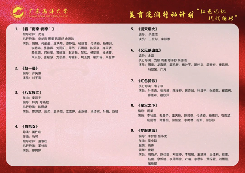 为深入贯彻落实党的教育方针,进一步弘扬红色文化,传承红色基因,优化红色文化育人举措,提升美育与思政教育思想高度,威尼斯人娱乐城-威尼斯人线上 主动创新红色文化实践形式,将于9月22日(周日)19:30,开展“红色记忆,代代相传”红色舞蹈进校园主题晚会,欢迎大家的到来!