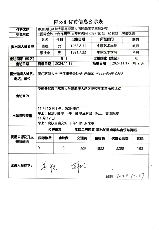 根据《关于进一步规范省部级以下国家工作人员因公临时出国的意见》的要求,现将广东海洋大学因公出访信息予以公示。公示时间为2024年10月17日至10月23日。如有意见,请在公示期内,向相关单位反映。(国际交流与合作部电话:0759-2396206;纪检监察室电话:0759-2383501)