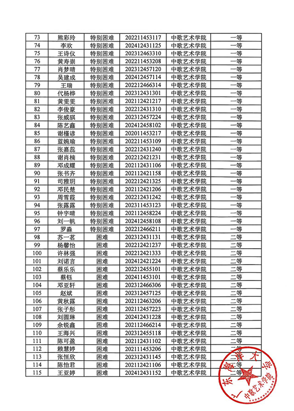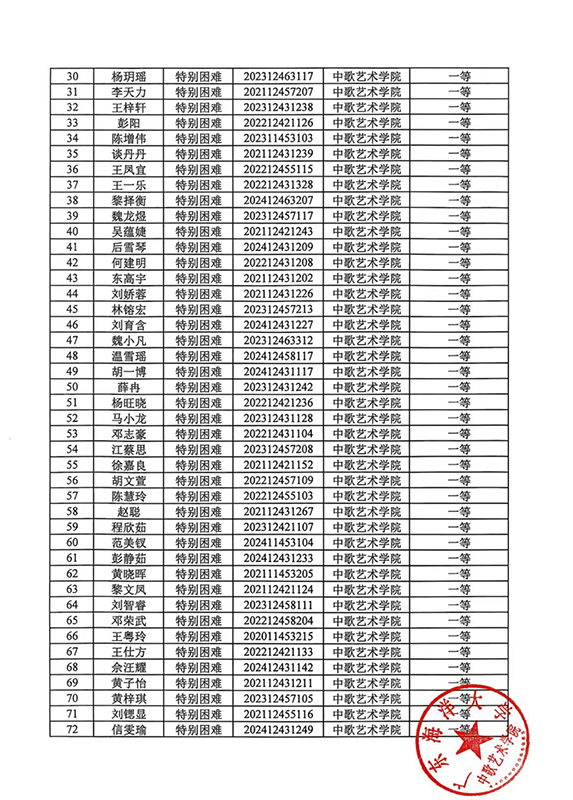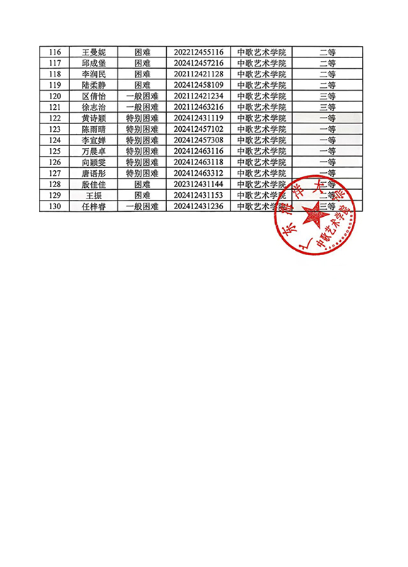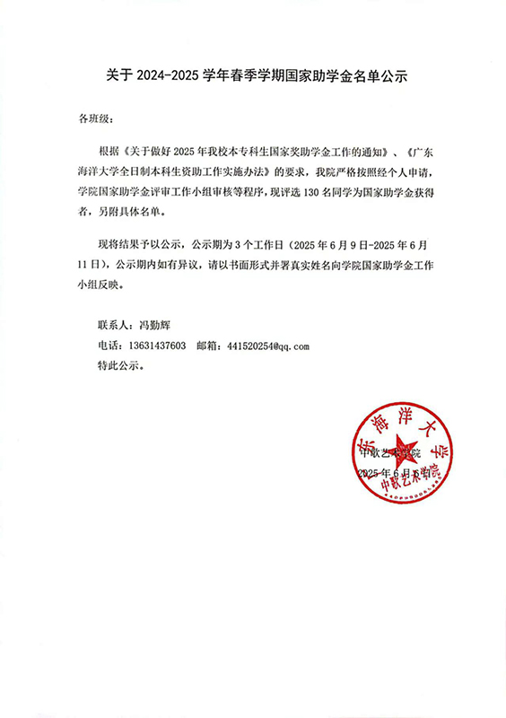关于2024-2025学年春季学期国家助学金名单公示