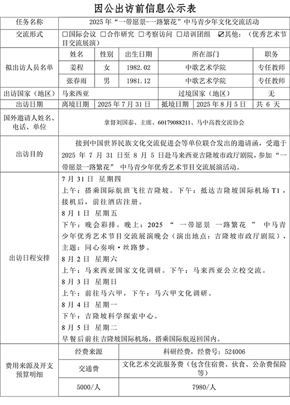 根据《关于进一步规范省部级以下国家工作人员因公临时出国的意见》的要求,现将广东海洋大学因公出访信息予以公示。公示时间为2025年7月2日至7月8日,如有意见、请在公示期内,向相关单位反映、(国际交流与合作部电话:0759-2396206:纪检监室电话:0759-2383501)