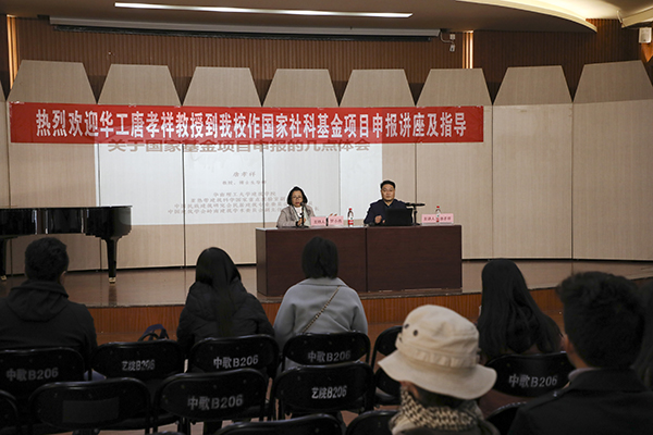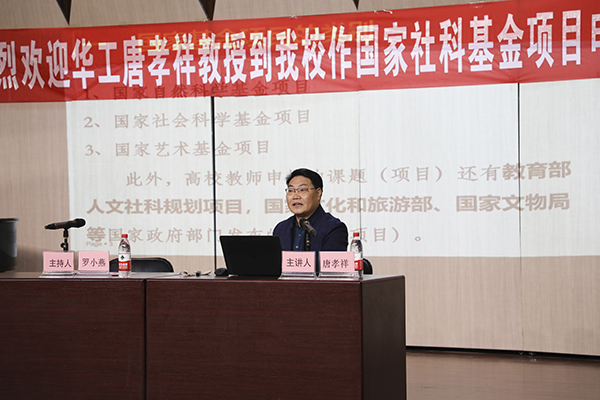 唐教授结合自身科研工作经历,分享了国家社会科学基金艺术学项目类及国家艺术基金项目的选题、撰写、申报技巧及评审重点等多方面的经验。整个报告会内容包括申报前的准备工作、选题的把握、摘要的表达与关键词设定、研究内容与目标的层次性、研究方法的创新性等九个方面。最后,他还特别指出了申报这两大国家基金项目需要特别注意的事项。