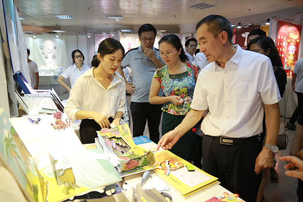 艺术设计系2019届毕业作品展开幕式在湖光校区图书馆隆重举行。中国东方演艺集团代表、人事部主任马淑红、艺术教育中心主任郑石等4人和学校党委书记曹俊明、校图书馆馆长樊怡菁、威尼斯人娱乐城