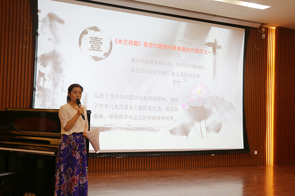 高鲲老师的《声乐表演》公开课以 “我的爱将与你相伴终生”(木兰诗篇选段)为例,通过分析曲式结构、演唱技巧以及发声机理等,与现场师生进行了一场生动、专业的声乐课。其中如何在演唱前快速进入情绪、使用韵母进行咬字训练以及维持高音稳定的技法,使学生们当场受益。这堂课展现了声乐专业课堂的风范,刻画了花木兰“柔情女字,巾帼英雄”的民族形象!