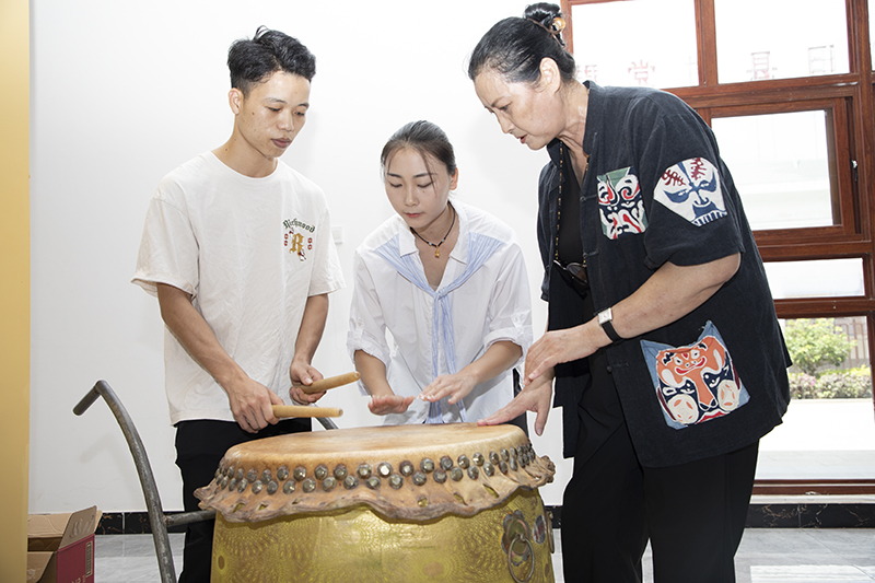 专家组在旧县村参观湛江傩舞博物馆,了解傩舞的起源、传承和发展,感受傩舞的文化魅力。旧县村党支部书记彭思恩组织两支傩舞队,在傩舞传承人的指挥下,现场演示傩舞。专家组与傩舞队员就动作、队形和鼓点节拍进行了细致深入的交流。