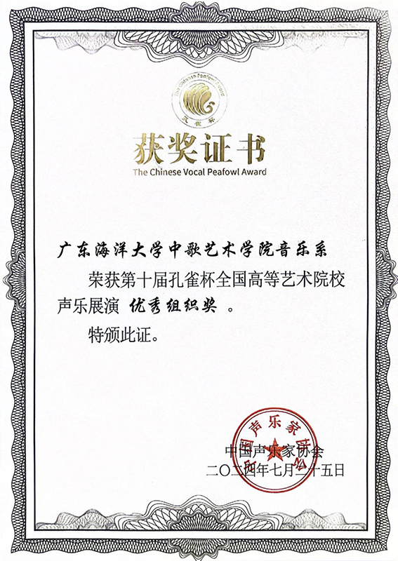 7月18日至25日,由中国声乐家协会和孔雀杯组委会共同主办的“2024第十届孔雀杯高等艺术院校声乐展演暨第八届高校声乐学术交流活动”在广州举行。我校威尼斯人娱乐城