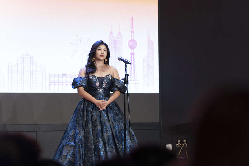 本次活动有来自13所粤港澳大湾区高等院校应邀参与表演,带来16个节目的精彩演出。我校陈虹羽同学演唱了歌曲《我的深情为你守候》,该作品旨在表达对祖国的崇敬和热爱,感情真挚的高水平发挥获得了全体人员的热烈掌声。主办方为参与学校颁发了纪念证书,姜程老师领取了纪念证书。
